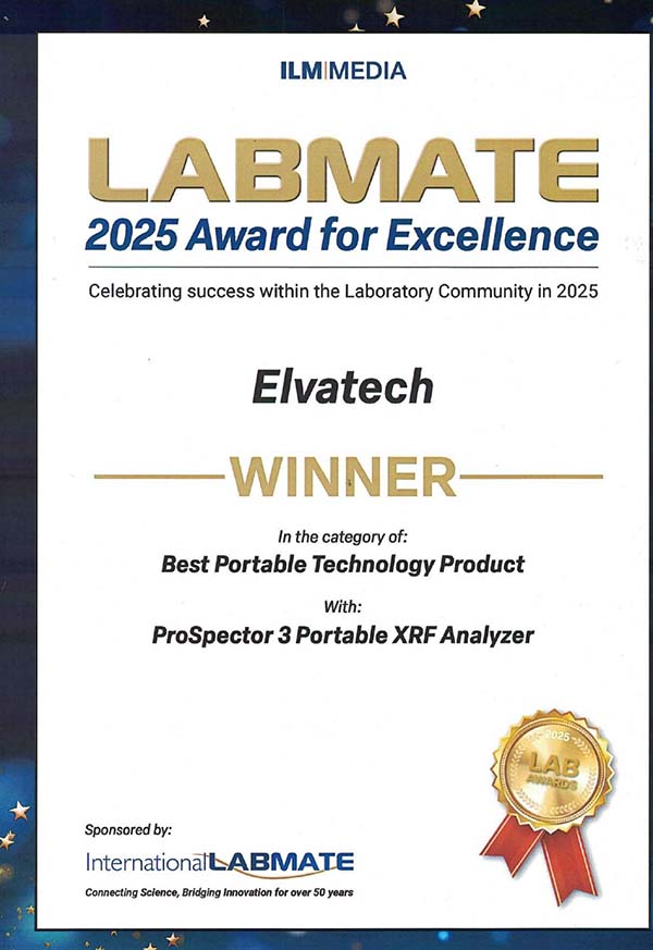 近日,創想儀器代理的Elvatech旗下優質產品,ProSpector 3便攜X射線熒光分析儀,憑借出色性能與創新科技,在眾多競爭者中脫穎而出,榮獲由International LABMATE贊助的LABMATE2025 Award for Excellence“Best Portable Technology Product”類別殊榮。這一國際認可不僅彰顯了ProSpector 3在便攜式檢測設備領域的地位,更是對Elvatech公司深厚技術底蘊與創新實力的權威肯定。